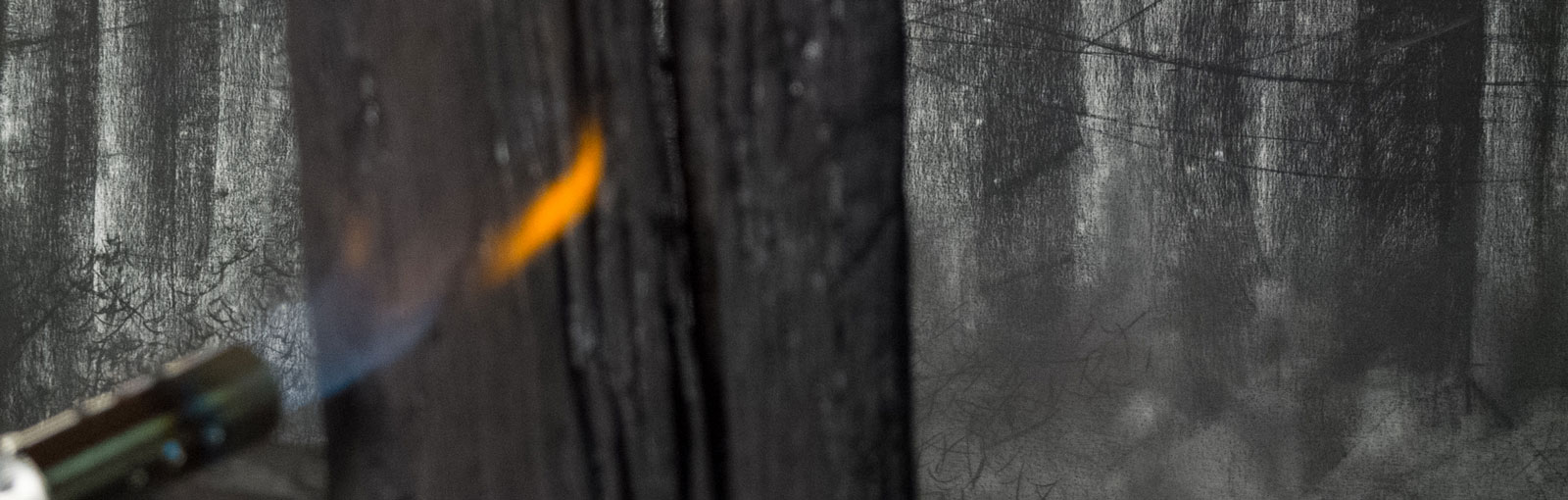 For Titarubi, knowledge and science are the pillars of Sakti, which she reveals with the pavilion’s installation The Shadow of Surrender featuring school benches made from burnt wood with thick open books placed on them, a metaphor for education and the length of time and perseverance needed to acquire knowledge. The charcoal drawing, accompanying this installation, of burnt and ashen trees reference the school benches, as well as the cycle of life, death and regeneration (burnt trees in the forest are fertilizers from which new trees will emerge). This cycle of continuity is also revealed within the cut frames for the drawing. The artist juxtaposes the process of acquiring knowledge and science with the colonial past and environmental destruction.